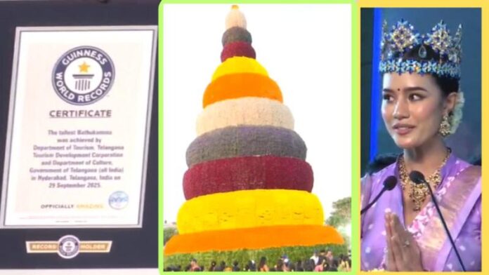 हैदराबाद में 63 फीट ऊंचा विशाल ‘बटुकम्मा’, दो गिनीज वर्ल्ड रिकॉर्ड अपने नाम किए, मिस वर्ल्ड बोलीं, ‘इट्स अ स्पेशल मोमेंट’