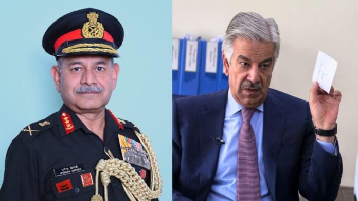 India-Pakistan: पाकिस्तान में भारतीय आर्मी चीफ के बयानों के बाद खलबली मच गई है. पाक रक्षामंत्री ख्वाजा आसिफ ने कहा कि भारत फिर से पाकिस्तान पर हमला और सीमा पार स्ट्राइक कर सकता है. भारतीय सेना प्रमुख उपेंद्र द्विवेदी ने सोमवार को पाकिस्तान को लेकर एक बयान दिया था. जिसके बाद ख्वाजा आसिफ को पहलगाम हमले के बाद वाला डर सता रहा है कि कहीं भारत फिर से न हमला कर दे.
