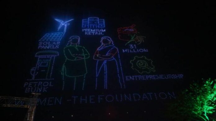 ड्रोन की लाइन ने दुनिया का सबसे लंबा हवाई नारा बनाया: 'तेलंगाना बढ़ रहा है. आओ और इस बढ़त में शामिल हों.' इस दौरान आसमान में एक शानदार नजारा दिखा, जिसमें राज्य का विजन 2047 दिखाया गया.