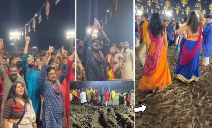 अहमदाबाद/वडोदरा: गुजरात के वडोदरा में नवरात्रि के पहले दिन गरबा खेलैया को भारी मुश्किल का सामना करना पड़ा। शहर के अलग-अलग हिस्सों में लगे जाम के बाद जब यूनाइटेड वे गरबा महोत्सव के ग्राउंड में जब लोग पहुंचे तो उनका सामना कीचड़ से हुआ। हजारों रुपये खर्च करके गरबा पास हासिल करने वालों लोगों ने हाय-हाय के नारे लगाए। लोगों ने कहा अतुल पुरोहित (प्रख्यात गायक) से दखल की मांग की। इसके बाद गायक अतुल पुरोहित को बीच बचाव में उतरना पड़ा। गुजरात में नवरात्रि से पहले बारिश हुई थी। इसके चलते गरबा आयोजकों के लिए ग्राउंड तैयार करना बड़ी चुनौती थी। ग्राउंड तैयार नहीं होने के बाद एंट्री पर लोगों ने नाराजगी व्यक्त की। आयोजकों ने खेलैया का गुस्सा देखकर किसी तरह से विवाद को शांत किया। आयोजकों ने एक दिन का समय मांगा और कहा कि मंगलवार को बारिश नहीं हुई तो ग्राउंड ठीक कर देंगे। आईएमडी ने वडोदरा में मंगलवार को भी बारिश की चेतावनी देते हुए येलो अलर्ट में जारी किया है।