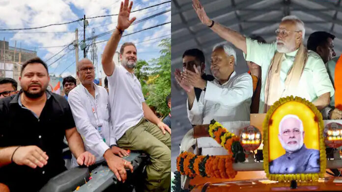 नई दिल्ली: बिहार (Bihar ) विधानसभा चुनाव (Assembly Elections) की तारीखों का ऐलान किया जा चुका है. इसे लेकर MATRIZE-IANS ने ओपिनियन पोल (Opinion Poll) किया है. इस सर्वे (Survey) की मानें तो बिहार में एनडीए (NDA) का पलड़ा भारी नजर आ रहा है. लोग सीएम नीतीश कुमार (CM Nitish Kumar) के कामों पर मुहर लगाते नजर आ रहे हैं. पोल के मुताबिक बिहार विधानसभा चुनाव 2025 में एनडीए को 150-160 सीटें मिल सकती है. वहीं महागठबंधन के 70-80 सीटें और अन्य को 9-12 सीटें मिल सकती है. सर्वे की मानें तो एनडीए क 49 फीसदी, महागठबंधन को 36 फीसदी और अन्य को 15 फीसदी वोट मिल सकता है.