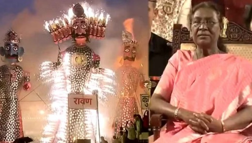 विजयादशमी के अवसर पर राष्ट्रपति द्रौपदी मुर्मू ने कहा कि जब आतंकवाद का दानव मानव जाति पर आक्रमण करता है, तो उसका वध करना आवश्यक हो जाता है। भारतीय सेना द्वारा किया गया ऑपरेशन सिंदूर आतंकवाद के रावण पर मानवता की विजय का प्रतीक है। इसके लिए हम भारत माता की रक्षा करने वाले प्रत्येक योद्धा को नमन करते हैं और उनका आभार व्यक्त करते हैं।