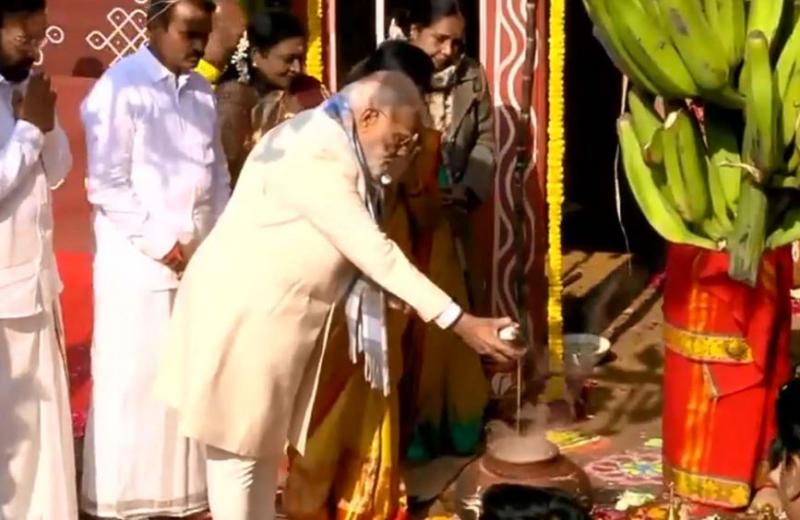 प्रधानमंत्री मोदी ने पोंगल त्योहार पर पारंपरिक तमिल रीति-रिवाजों के साथ पूजा की। उन्होंने गाय और उसके बछड़े को चारा खिलाया, उन्हें माला पहनाई और उनकी पूजा-अर्चना की। इस दृश्य ने भारतीय संस्कृति में कृषि, पशुधन और प्रकृति के महत्व को रेखांकित किया। पीएम मोदी ने कहा कि पोंगल केवल फसल कटाई का पर्व नहीं है, बल्कि यह कृतज्ञता, सामूहिकता और जीवन मूल्यों का उत्सव है।