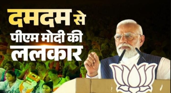 दमदम (पश्चिम बंगाल): पश्चिम बंगाल के दमदम में एक विशाल जनसभा को संबोधित करते हुए प्रधानमंत्री नरेंद्र मोदी ने राज्य की सत्ताधारी पार्टी पर कड़ा प्रहार किया। उन्होंने दावा किया कि पहले चरण के मतदान के रुझानों ने यह साफ कर दिया है कि बंगाल की जनता ने अब बदलाव का मन बना लिया है।