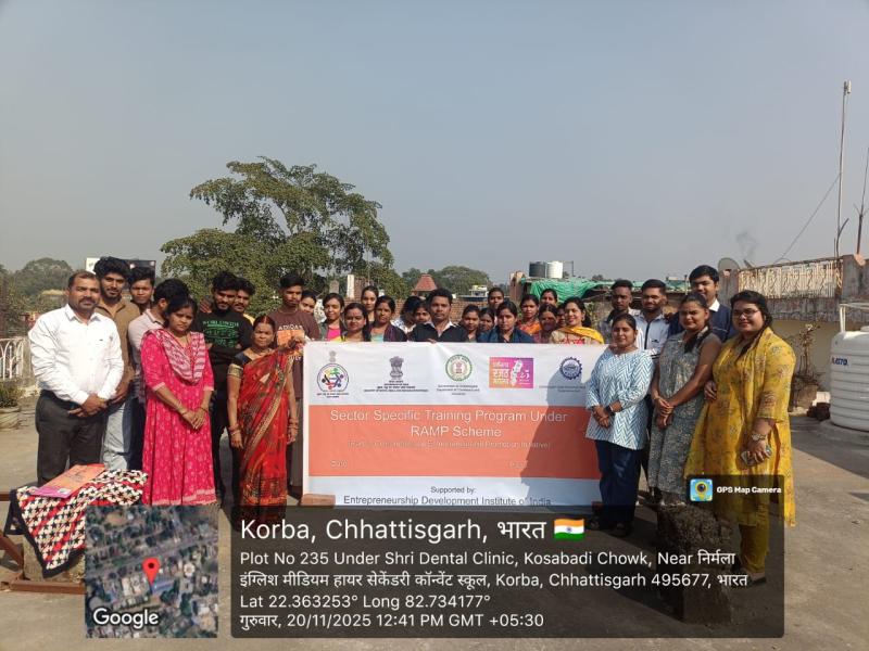 कोरबा।  कोरबा जिले में MSME की RAMP योजना के अंतर्गत हस्तशिल्प से जुड़े कारीगरों तथा इस क्षेत्र में आगे कार्य करने के इच्छुक युवाओं के लिए 3 दिवसीय उद्यमिता विकास प्रशिक्षण का सफल आयोजन किया गया। इस प्रशिक्षण कार्यक्रम का संचालन भारतीय उद्यमिता विकास संस्थान (EDII) द्वारा छतीसगढ़ स्टेट इंडस्ट्रियल डेवलपमेंट कारपोरेशन लिमिटेड (CSIDC) के सहयोग से किया गया। इस प्रशिक्षण का उद्देश्य हस्तशिल्प क्षेत्र में कार्यरत प्रतिभागियों को व्यवसाय प्रबंधन, बाज़ार की मांग, उत्पाद मूल्य निर्धारण, वित्तीय प्रबंधन तथा आधुनिक विपणन तकनीकों की जानकारी प्रदान करना था। विशेषज्ञों ने हस्तशिल्प उद्योग में उपलब्ध अवसरों, सरकारी योजनाओं, RAMP कार्यक्रम के लाभ तथा स्थानीय स्तर पर उद्यम स्थापित करने की संभावनाओं पर विस्तृत चर्चा की। कार्यक्रम में जिला उद्योग कार्यालय कोरबा के डिस्ट्रिक्ट रिसोर्स पर्सन श्री भानु दास ने उद्योग विभाग द्वारा उपलब्ध विभिन्न योजनाओं की जानकारी साझा की, एवं सफल उद्यमी बनने के व्यावहारिक पहलुओं, प्रेरणा, आत्मविश्वास और कौशल विकास पर महत्वपूर्ण सत्र लिया। साथ ही ईडीआईआई के परियोजना अधिकारी श्री देवेंद्र साबले ने प्रतिभागियों को उद्यमिता के मूल तत्वों, सरकारी सहयोग तथा व्यवसाय शुरू करने की चरणबद्ध प्रक्रिया के बारे में मार्गदर्शन दिया। साथ ही HDFC के पूर्व ब्रांच मैनेजर श्री सूरज चंद्र डे ने व्यवसाय में आने वाली चुनोतियो एवं उनसे उभरकर अपने कार्य को ओर बेहतर तरीके से कैसे संपादित किया जा सकता है उस पर उद्यमियों को सबोधित किया। तीन दिवसीय प्रशिक्षण के दौरान प्रतिभागियों ने समूह कार्य, प्रायोगिक अभ्यास और व्यवसाय मॉडल विकास जैसी गतिविधियों में सक्रिय रूप से भाग लिया।