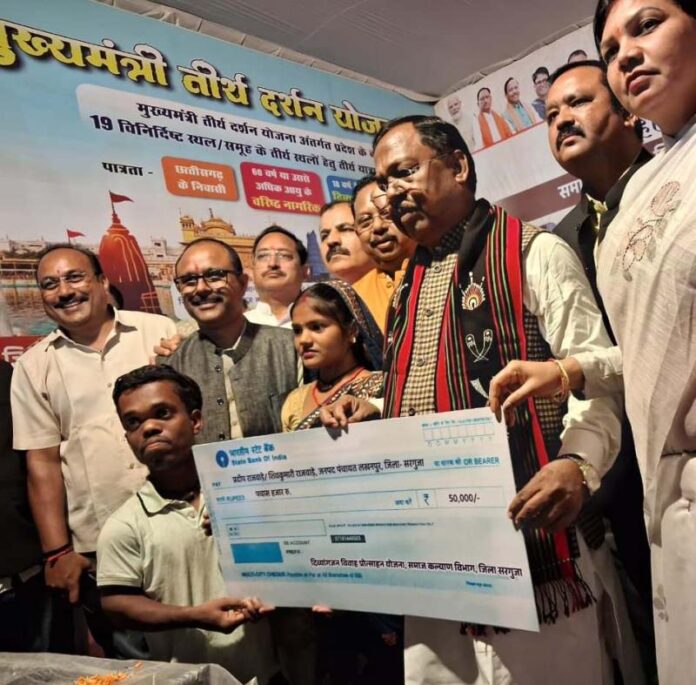 मंत्री नेताम ने दो दिव्यांगजनों को व्हीलचेयर, एक को ट्रायसाइकिल, एक दिव्यांगजन को श्रवण यंत्र तथा एक दिव्यांगजन को विवाह प्रोत्साहन योजना के अंतर्गत 50 हजार रुपए का प्रतीकात्मक चेक प्रदान किया।
