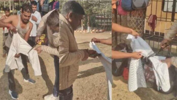 फुल स्लीव शर्ट पहनने पर परीक्षार्थियों के कपड़े काटे