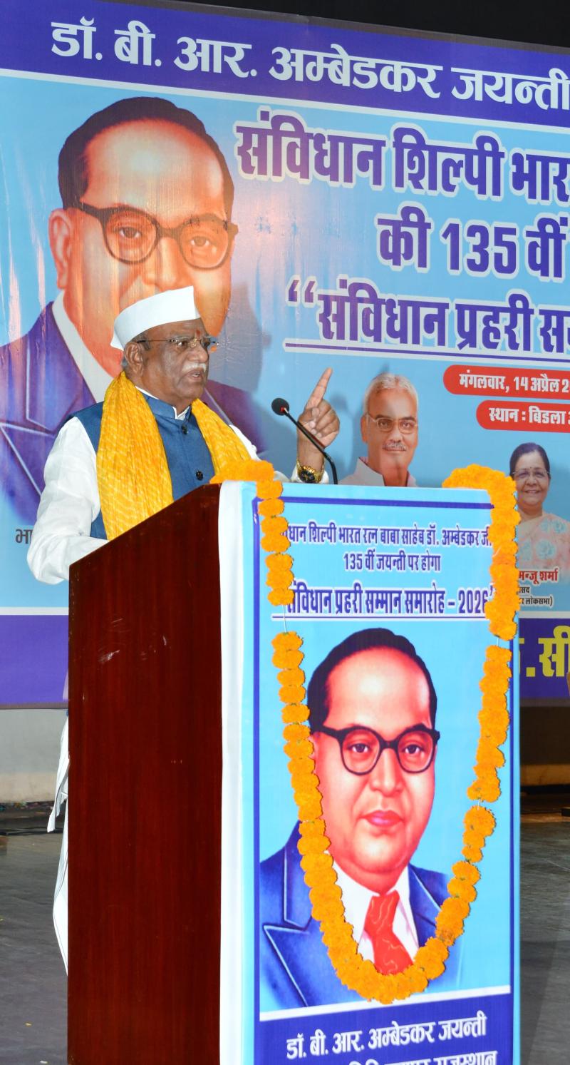 जयपुर। राज्यपाल हरिभाऊ बागडे ने कहा कि बाबा साहेब डॉ. भीमराव अम्बेडकर व्यक्ति नहीं अपने आप में संस्था थे। उन्होंने देश को सामाजिक समरसता का मंत्र ही नहीं दिया बल्कि राष्ट्र सर्वोच्च है, यह दृष्टि भी दी। वह संविधान और भारतीय संस्कृति में रचे-बसे मूल्यों से जुड़े महामना थे। उन्होंने कहा कि महामना वह होता है जो मनुष्य जैसा ही होते हुए भी अपने विचारों से और कर्म से जीते जी महानतम विचारों का आलोक देता है।
