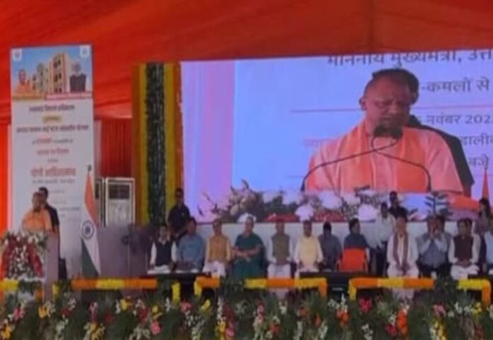 कार्यक्रम को संबोधित करते हुए मुख्यमंत्री योगी आदित्यनाथ ने कहा कि 2017 के पहले माफिया गरीबों की जमीन पर कब्जा कर लेते थे। डीजीपी आवास के पास अपनी कोठियां बनवाते थे और कोई कुछ नहीं कर पाता था पर अब माफियाओं की कब्जा की गई जमीन पर गरीबों के लिए घर बन रहा है। हम इसी तरह माफियाओं की जमीन पर गरीबों के आवास बनवाते रहेंगे।