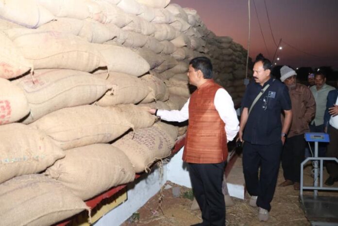 उन्होंने किसानों से भी बातचीत कर उनकी आवश्यकताओं, समस्याओं और सुझावों के बारे में जानकारी ली। मंत्री ने आश्वस्त किया कि किसानों को किसी प्रकार की परेशानी न हो, इसके लिए विभाग और समिति द्वारा हर संभव सहयोग प्रदान किया जाएगा। इस अवसर पर अपर आयुक्त एवं प्रबंध संचालक के.एन. कांडे सहित संबंधित विभागीय अधिकारी और समिति के सदस्य उपस्थित थे।