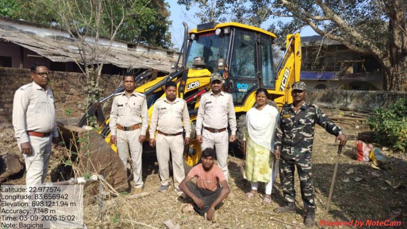 जांच के दौरान कक्ष क्रमांक पी-1331 में एक जेसीबी मशीन से वन भूमि में मिट्टी की खुदाई कर खेत तैयार करने का कार्य किया जा रहा था। मौके पर मौजूद जेसीबी चालक फुलचंद उरांव, पिता मंगलेश्वर उरांव, निवासी ग्राम गुड़दरी, जिला गुमला (झारखंड) से पूछताछ की गई और वैध दस्तावेज मांगे गए। चालक ने बताया कि मशीन के मालिक ने उक्त भूमि को अपनी निजी भूमि बताकर खेत निर्माण के लिए खुदाई करने को कहा था।