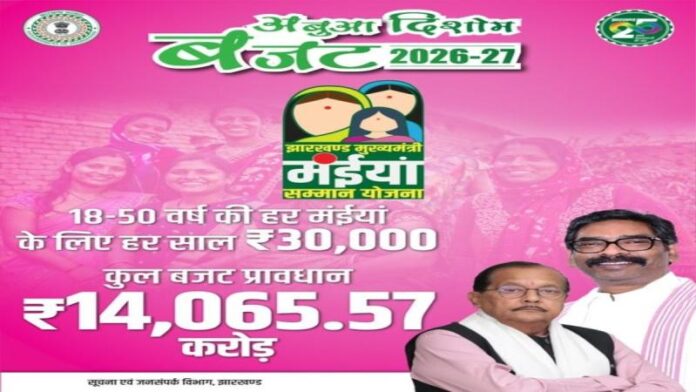 Jharkhand Budget 2026 में राज्य की महिलाओं पर खास फोकस किया गया है। विधानसभा सत्र 2026-27 में पेश बजट में Maiya Samman Yojana के लिए ₹14,065.57 करोड़ का प्रावधान रखा गया है। इस योजना के तहत 18 से 50 वर्ष की महिलाओं को हर महीने ₹2500, यानी सालाना ₹30,000 की आर्थिक सहायता दी जाएगी।