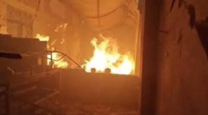 मुजफ्फरपुर। मुजफ्फरपुर के सरैया बाजार स्थित एक मॉल में शनिवार तड़के भीषण आग लग जाने से लाखों की संपत्ति जलकर खाक हो गई। सरैया थाना के ठीक सामने स्थित इस मॉल के कपड़ों के शोरूम में लगी आग ने देखते ही देखते विकराल रूप धारण कर लिया, जिससे पूरे इलाके में हड़कंप मच गया।