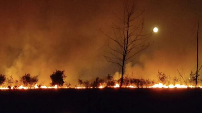 इंदौर: मध्य प्रदेश के इंदौर में एक बड़ी घटना सामने आई है. यहां देवी अहिल्या बाई होल्कर हवाई अड्डा के पिछले हिस्से की दीवार के पास भीषण आग लग गई. आग के कारण मौके पर भारी अफरा तफरी का माहौल बन गया. हादसे की सूचना मिलते ही दमकल विभाग की टीम घटनास्थल पर पहुंची और करीब 30 टैंकरों की मदद से आगजनी की घटना पर काबू पाया गया. इस हादसे में किसी तरह की कोई जनहानि की खबर नहीं है.