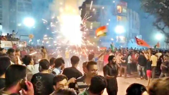 देवास में जीत के जश्न में हुड़दंग, आतिशबाजी से पुलिसकर्मी घायल