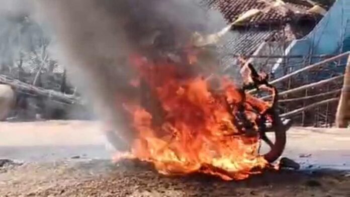 पुरानी रंजिश में बाइक को किया आग के हवाले