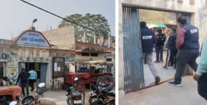 मुरैना। मध्यप्रदेश (Madhya Pradesh) के मुरैना जिले (Morena district) के सबलगढ़ नगर पालिका परिषद में ईओडब्ल्यू की टीम की दबिश से हड़कंप मच गया। टीम के पहुंचते ही पालिका के सभी कर्मचारी आलमारियों को बंद कर दफ्तर से भाग खड़े हुए। लगभग 4 घंटे के इंतजार के बाद टीम को खाली हाथ लौटना पड़ा।