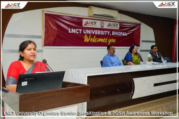 भोपाल। LNCT University के महिला सशक्तिकरण प्रकोष्ठ एवं आंतरिक शिकायत समिति (ICC) द्वारा, IQAC के तत्वावधान में, National Commission for Women तथा Yuvamanthan के सहयोग से “जेंडर सेंसिटाइजेशन एवं POSH जागरूकता कार्यशाला” का आयोजन किया गया। यह कार्यशाला यूजीसी दिशा-निर्देशों एवं Prevention of Sexual Harassment Act (POSH अधिनियम, 2013) के प्रावधानों के अनुरूप आयोजित की गई।कार्यशाला की मुख्य वक्ता National Law Institute University की वरिष्ठ प्राध्यापिका प्रो. सुषमा शर्मा रहीं। अपने संबोधन में उन्होंने उच्च शिक्षण संस्थानों में लैंगिक समानता, संस्थागत जवाबदेही तथा POSH अधिनियम के प्रभावी क्रियान्वयन के महत्व पर प्रकाश डाला। उन्होंने कहा कि सुरक्षित और गरिमापूर्ण परिसर सुनिश्चित करना शिक्षकों, कर्मचारियों और विद्यार्थियों की सामूहिक जिम्मेदारी है।