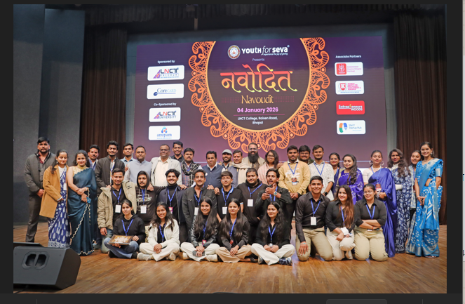 भोपाल।  यूथ फॉर सेवा, भोपाल द्वारा एलएनसीटी (LNCT) परिसर में उत्तर भारत के सबसे बड़े बाल उत्सव ‘नवोदित 2025–26’ का सफल आयोजन किया गया। कार्यक्रम में शासकीय विद्यालयों, सेवा बस्तियों एवं सामाजिक संस्थाओं से जुड़े 578 बच्चों सहित कुल 1031 प्रतिभागियों एवं सहयोगियों ने सहभागिता की। बच्चों ने रंगोली, चित्रकला, नृत्य, गायन, नाट्य मंचन, विज्ञान मॉडल सहित विभिन्न गतिविधियों में अपनी प्रतिभा का प्रभावशाली प्रदर्शन किया। कार्यक्रम में सभी बच्चों को पुरस्कारों के साथ शीत ऋतु से सुरक्षा हेतु कंबल भी वितरित किए गए। कार्यक्रम में  नंदा भालावे, डॉ. दीपक पालिवाल, अश्विनीकुमार बेल्लुटागी एवं विक्रम सिंह मुख्य अतिथि रहे। आयोजन का समन्वय अतर साहू, यूथ फॉर सेवा भोपाल चैप्टर द्वारा किया गया। Advisory Board से डॉ. अनुराग राय, अभिनव गौर, अतुल विश्वकर्मा एवं डॉ. प्रशांत सिंह, कलचुरी एलएन सिटी इनक्यूबेशन सेंटर के डायरेक्टर आकाश राय, तथा विक्रम सिंह, वरिष्ठ अभियंता, बीएचईएल उपस्थित रहे।