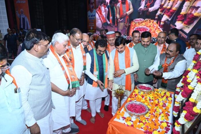 डॉ. मोहन यादव ने कहा कि कांग्रेस की अपनी स्वयं की कोई विचारधारा नहीं है। देश की आजादी के बाद पंडित मदन मोहन मालवीय जब वाराणसी में काशी हिंदू विश्व विद्यालय की स्थापना करा रहे थे, तब तत्कालीन प्रधानमंत्री जवाहरलाल नेहरू सोमनाथ मंदिर से लेकर अयोध्या में भगवान श्रीराम लला के मंदिर को लेकर क्या कर रहे थे, देश जानता है। कांग्रेस पार्टी के कुछ नेताओं के व्यक्तिगत हितों के कारण केसर की क्यारी वाली धरती जम्मू-कश्मीर में हजारों निर्दोष लोगों का खून बहाया गया। डॉ. श्यामा प्रसाद मुखर्जी ने जम्मू-कश्मीर में दो विधान, दो प्रधान और दो निशान का विरोध करते हुए आदोलन किया और जनसंघ की स्थापना की। वर्ष 1952 में जनसंघ की स्थापना से लेकर आज तक भाजपा की विचारधारा में कभी समझौता नहीं किया। प्रधानमंत्री श्री नरेन्द्र मोदी जी ने जम्मू-कश्मीर से धारा-370 हटाकर कलंट मिटाने का कार्य किया है। भाजपा ने सनातन संस्कृति के भाव से कभी समझौता नहीं किया। प्रधानमंत्री श्री नरेन्द्र मोदी जी ने सर्वोच्च न्यायालय के फैसले के बाद अयोध्या में श्रीराम लला का मंदिर बनवाकर दुनिया को दिखाया कि भारत एक भाव से कार्य कर रहा है।