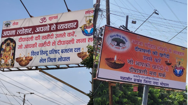 इंदौर। दीवाली का त्योहार नजदीक है ऐसे में लोग खरीदारी के लिए निकल चुके है। लेकिन खरीदारी को लेकर मध्य प्रदेश की राजधानी भोपाल के रत्नागिरी में विश्व हिंदू परिषद और बजरंग दल ने पोस्टर लगाए हैं। इन पोस्टर में लिखा है कि ‘अपना त्योहार – अपनों से व्यवहार’ इस स्लोगन के साथ पोस्टर को लगाया गया है। अब इन पोस्टर को लेकर प्रदेश में सियासत तेज हो गई है।