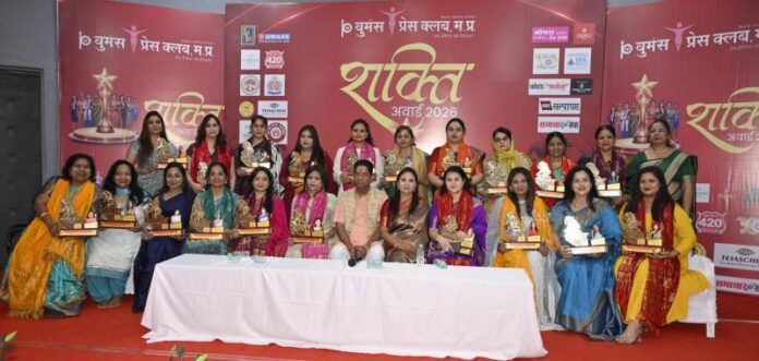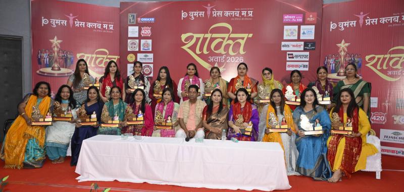 इंदौर। वुमेंस प्रेस क्लब, मप्र द्वारा अंतरराष्ट्रीय महिला दिवस के उपलक्ष्य में जाल सभागृह में “शक्ति अवार्ड 2026” का भव्य एवं गरिमामय आयोजन संपन्न हुआ। कार्यक्रम में प्रदेश भर से आईं प्रतिभाशाली महिलाओं ने उत्साहपूर्वक सहभागिता की। कार्यक्रम के मुख्य अतिथि न्यायमूर्ति विजय कुमार शुक्ला (प्रशासनिक न्यायाधीश, उच्च न्यायालय, खंडपीठ इंदौर) एवं विशेष अतिथि मध्यप्रदेश लोक सेवा आयोग की सचिव सुश्री राखी सहाय उपस्थित रहीं। पिछले एक दशक से यह मंच समाज के विभिन्न क्षेत्रों में उल्लेखनीय योगदान देने वाली महिलाओं को पहचान और सम्मान प्रदान करता आ रहा है। इस वर्ष भी विभिन्न क्षेत्रों में उत्कृष्ट कार्य करने वाली महिलाओं को “शक्ति अवार्ड 2026” से सम्मानित किया गया।