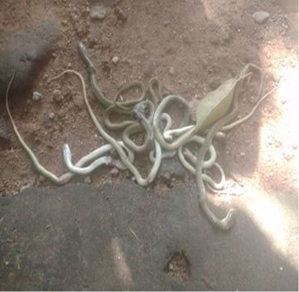 ग्रामीणों ने बताया कि ये सांप दीवार की नींव के पास बने एक गड्ढे से निकल रहे थे। इतने सांप निकलने के बाद गड्ढे की खुदाई की गई, तो वहां से लगभग 30 अंडे और एक सांप मिला। इस घटना के बाद से लोग दहशत में आ गए। लोगों ने सर्पमित्र जग्गू परिहार इसकी सूचना दी।