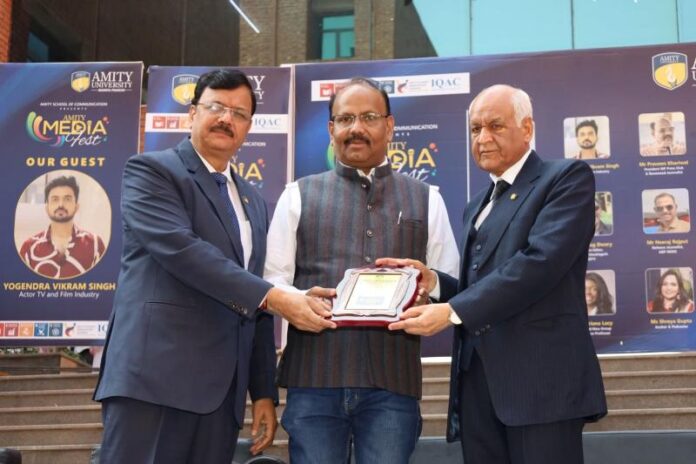 अपने संबोधन में कुलगुरू प्रो. (डॉ.) आर. एस. तोमर ने कहा कि एमिटी मीडिया फेस्ट आने वाले मीडिया विद्यार्थियों और प्रोफेशनल्स के लिए एक स्टेपिंग स्टोन सिद्ध होगा। यह मंच विद्यार्थियों को शैक्षणिक ज्ञान के साथ-साथ व्यावहारिक अनुभव और उद्योग जगत से सीधा संवाद स्थापित करने में मदद करेगा। उद्घाटन सत्र के पश्चात विभिन्न प्रतियोगिताओं एवं सृजनात्मक गतिविधियों का शुभारंभ हुआ। इस अवसर पर प्रो-वाइस चांसलर (रिसर्च) प्रो. (डॉ.) एम. पी. कौशिक, रजिस्ट्रार डॉ. राजेश जैन तथा एमिटी स्कूल ऑफ कम्युनिकेशन के प्रमुख डॉ. आदित्य शुक्ला सहित विभिन्न विभागों के प्रमुख एवं गणमान्यजन उपस्थित रहे। तीन दिवसीय मीडिया फेस्ट के दूसरे दिन 12 फरवरी को फिल्म फेस्टिवल आयोजित किया गया, जिसमें बॉलीवुड अभिनेता योगेंद्र विक्रम सिंह तथा प्रख्यात लेखक एवं निर्देशक शांतनु गुप्ता विद्यार्थियों से संवाद हुआ। अंतिम दिन 13 फरवरी को “एआई इन मीडिया एंड गवर्नेंस” विषय पर मीडिया कॉन्क्लेव का आयोजन होगा, जिसमें विशेषज्ञों के व्याख्यान और पैनल चर्चा के माध्यम से मीडिया के बदलते स्वरूप पर व्यापक विचार विमर्श किया जायेगा। इस अवसर पर एबीपी न्यूज से नीरज राजपूत, एनडीटीवी से अनुराग द्वारी, एशियन डिस्पेच से कृतिका गोयल, बिग एफएम से आरजे नैनी, मनीकन्ट्रोल से अभिनव गुप्ता आदि गणमान्य मीडिया के दिग्गत उपस्थित रहें।