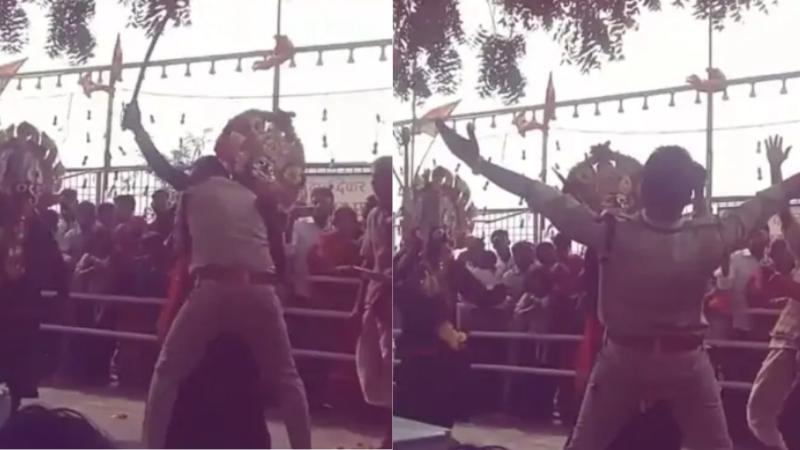 वीडियो में देखा जा सकता है कि मंदिर प्रांगण में कुछ श्रद्धालु मां काली का स्वरूप धारण कर पारंपरिक नृत्य कर रहे हैं और जयकारों से माहौल पूरी तरह भक्तिमय बना हुआ है. इसी दौरान सुरक्षा में लगे एक पुलिसकर्मी खुद को रोक नहीं पाता और ड्यूटी छोड़कर श्रद्धालुओं के बीच पहुंच जाता है. इसके बाद वह भी ताल से ताल मिलाते हुए उनके साथ नृत्य करने लगता है|