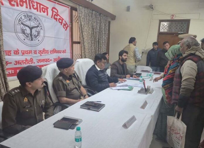 अलीगढ़ । जिलाधिकारी संजीव रंजन की अध्यक्षता में एनेक्सी सभागार अतरौली में सम्पूर्ण समाधान दिवस का आयोजन किया गया। जनसमस्याओं के त्वरित व गुणवत्तापूर्ण निस्तारण की प्राथमिकता के साथ को अतरौली में आयोजित सम्पूर्ण समाधान दिवस में बड़ी संख्या में ग्रामीणों और आमजन ने अपनी समस्याएं रखीं, जिनमें से कई का मौके पर ही निस्तारण किया गया।