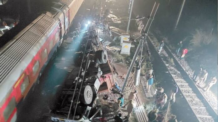 बाराबंकी में पुल से रेलवे लाइन पर गिरा डंपर