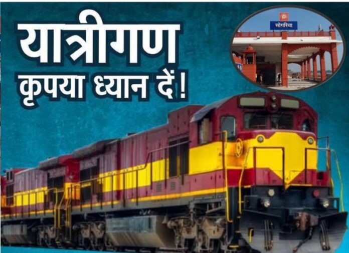 2) गाड़ी संख्या 14813 जोधपुर–भोपाल एक्सप्रेस आज से 04 अक्टूबर तक अपने निर्धारित मार्ग की बजाय गुड़ला–कोटा चंबल केबिन–सोगरिया मार्ग से संचालित होगी। (सोगरिया स्टेशन पर आने-जाने समय रात 11:30/11:40 बजे)