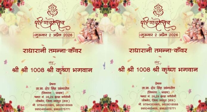जयपुर। राजस्थान की पावन भूमि ने एक बार फिर से भक्ति की अनोखी मिसाल पेश करने जा रही है। जयपुर जिले के जोबनेर की 21 वर्षीय दिव्यांग युवती तमन्ना कंवर ने अपने आराध्य भगवान श्रीकृष्ण को ही अपना जीवनसाथी चुन लिया है। इस अलौकिक विवाह का आयोजन आज यानी 2 अप्रैल को चैत्र पूर्णिमा के पावन अवसर पर पूरे पारंपरिक हिंदू रीति-रिवाजों के साथ किया जाएगा। जिस धरती ने कभी मीराबाई को जन्म दिया, उसी राजस्थान की मिट्टी में आज तमन्ना की भक्ति उसी परंपरा को आगे बढ़ाती नजर आ रही है।