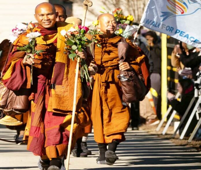 टैक्सास  । अमेरिका के टेक्सास राज्य में बौद्ध भिक्षुओं की शांति यात्रा जारी है। 19 बौद्ध भिक्षु एक भारतीय कुत्ते के साथ यात्रा कर रहे हैं।इस स्वान का नाम बौद्ध भिक्षुओं ने आलोका रखा है। बौद्ध भिक्षुओं का यह दल फोर्ट वर्थ से लेकर वॉशिंगटन डीसी की 2300 मिल की पदयात्रा पर निकला है। सभी जगह इनका स्वागत किया जाता है तथा लोग इन्हें खान शाकाहारी खाना भी उपलब्ध कराते हैं। रुकने की व्यवस्था भी जहां से हैं, निकलते हैं वहां के निवासी करते हैं। बौद्ध भिक्षु शांति का प्रतीक बन गए हैं। इस यात्रा का उद्देश्य लोगों में करुणा और शांति का संदेश फैलाना है।